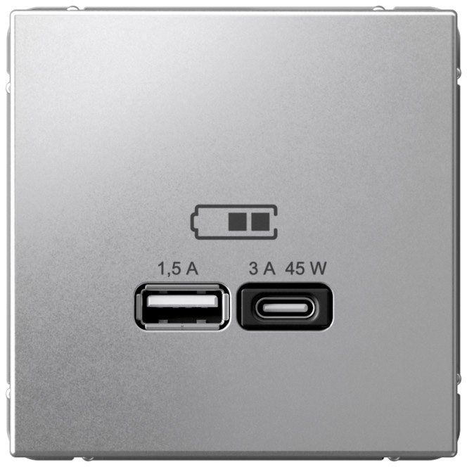 Розетка (безвинтовые клеммы) ArtGallery, ArtGallery Pure, со шторками, с заземлением, одинарная, безвинтовые клеммы, цвет - алюминий