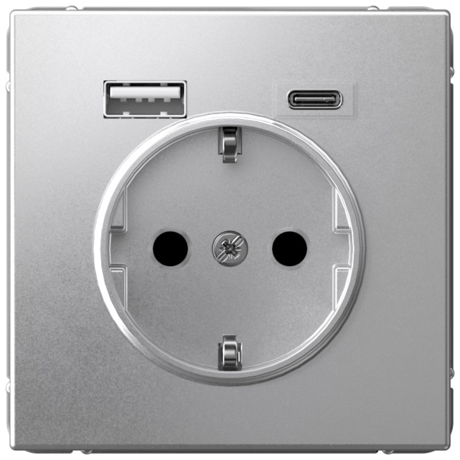 Розетка (безвинтовые клеммы) ArtGallery, ArtGallery Pure, со шторками, с заземлением, одинарная, безвинтовые клеммы, цвет - алюминий