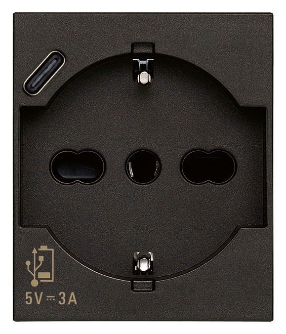 Linea, со шторками, с заземлением, одинарная, винтовые клеммы, цвет - черный матовый