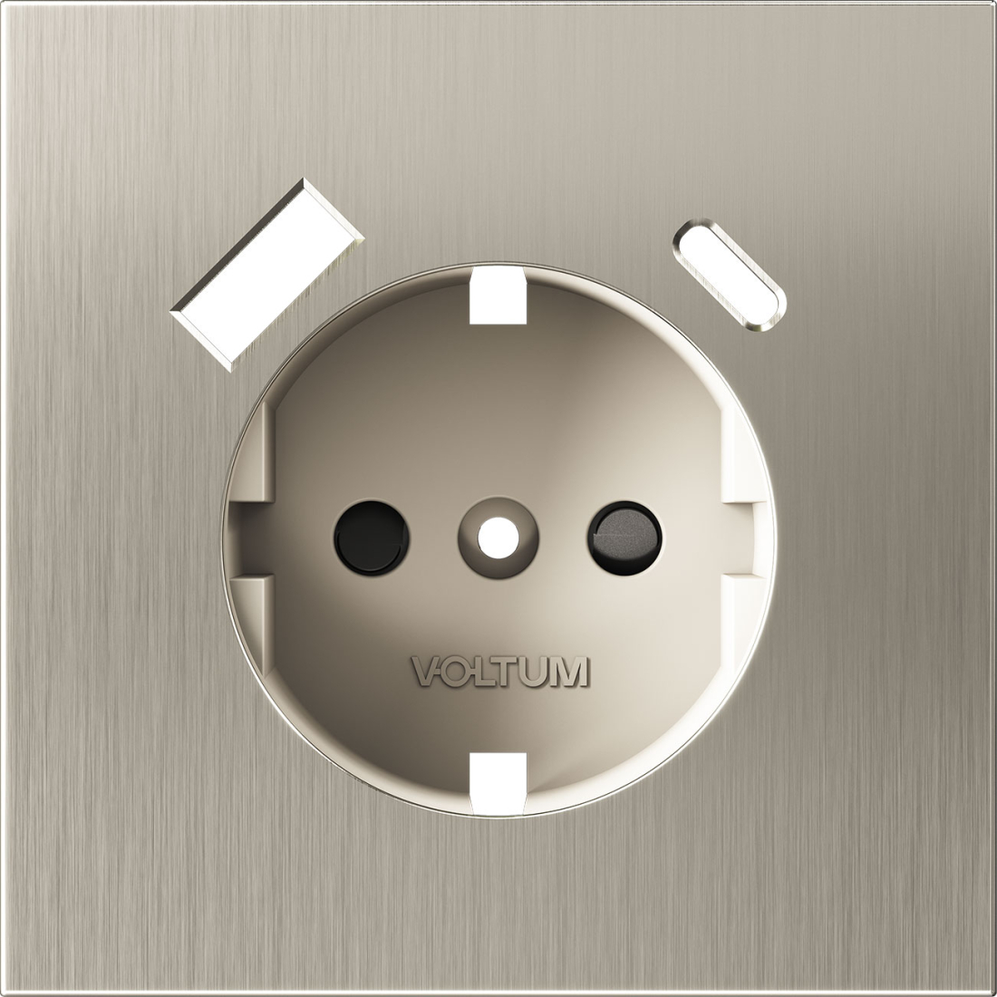 Накладка электрической розетки S70 Metal, без шторок, с заземлением, одинарная, безвинтовые клеммы, цвет - никель металл