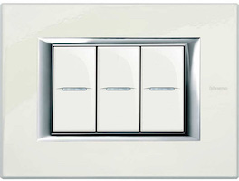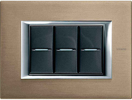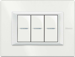 - Living Light Air, в которую вошли выключатели BTicino с элегантным декором и утонченными элементами рамок. Оттенки можно подобрать под любой интерьер – в коллекции есть нейтральные цвета, блестящие поверхности, декорированные узорами, орнаментами, геометрическими линиями. Изделия предназначены для горизонтальной установки, имеют утонченные грани до 5 мм.